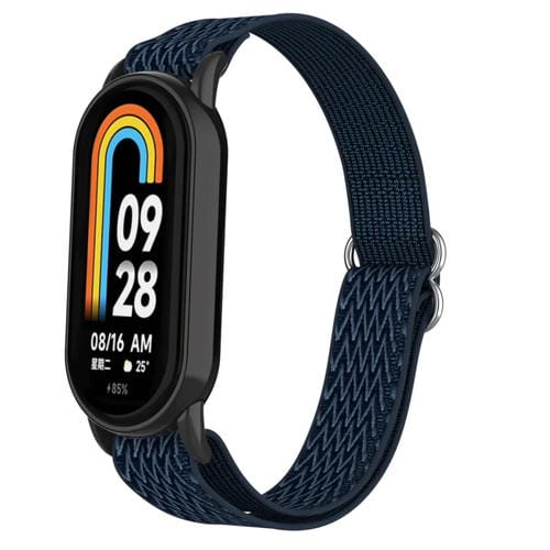 Correa de reloj de nailon elástica con conector de plástico para Xiaomi Smart Band 9/8 (azul medianoche)