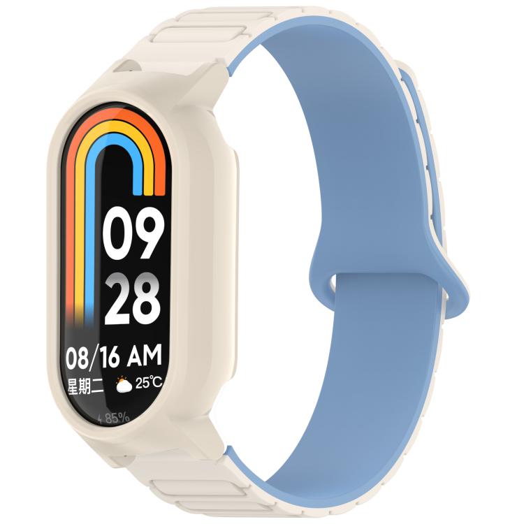 Correa de reloj de silicona magnética en forma de I para Xiaomi Smart Band 9/9 NFC PC Watch Frame (blanco + azul blanco)