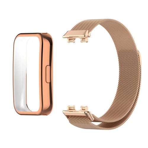 Correa de reloj magnética milanesa de metal con cobertura total de TPU para Huawei Band 10/9/8 (oro rosa)