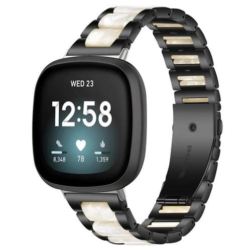 Correa de resina metálica con tres cuentas para Fitbit Versa 4/3/Sense 2/Sense xDfind (negro y blanco)