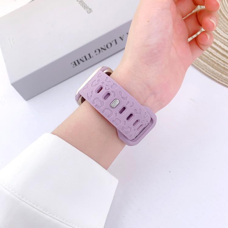 Correa de silicona con hebilla cóncava de leopardo para Apple Watch de 46 mm, 49 mm, 45 mm y 44 mm (morado claro)