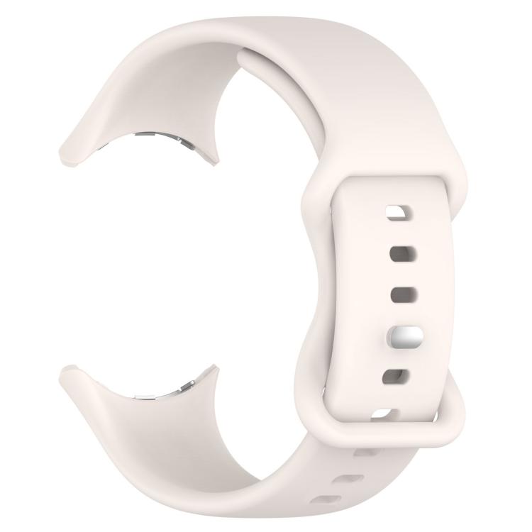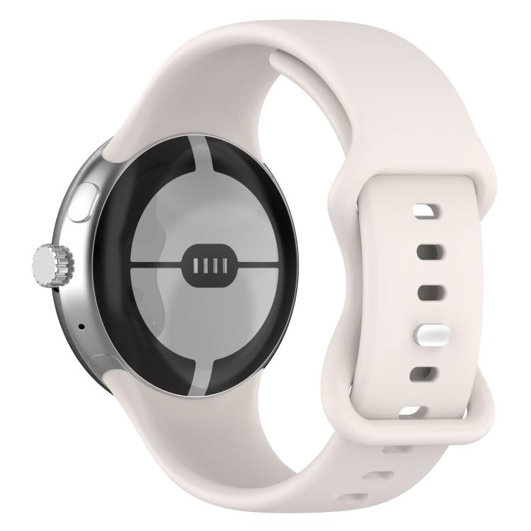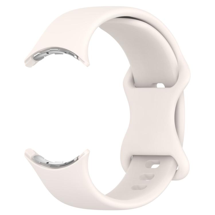 Correa de silicona con hebilla de mariposa y película curva 3D para Google Pixel Watch 2 (beige y blanco)