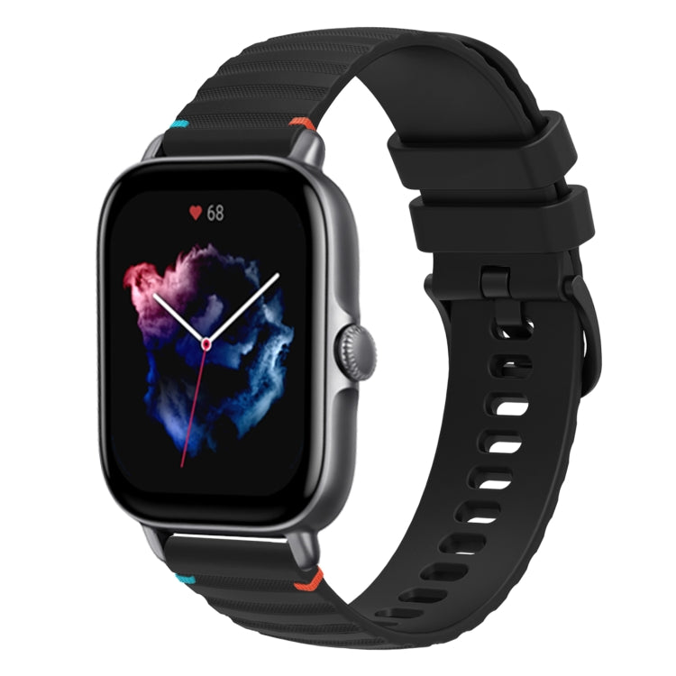 Correa de Silicona para Reloj Amazfit GTS 3 20mm con Puntadas Onduladas y Puntos (Negra)
