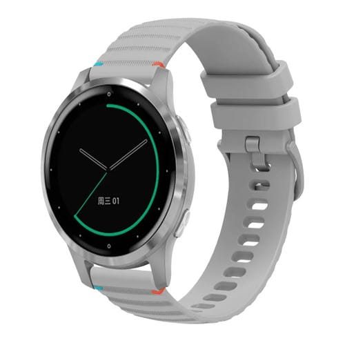 Correa de Silicona para Reloj Garmin Active S 18mm con Puntadas Onduladas y Puntos (Gris)