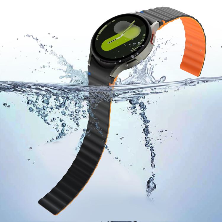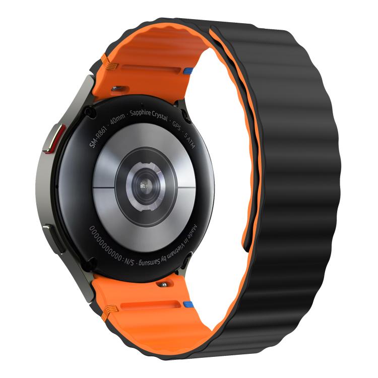Correa de silicona magnética con costuras onduladas para Samsung Galaxy Watch 7/6/5/4 (negro y naranja)