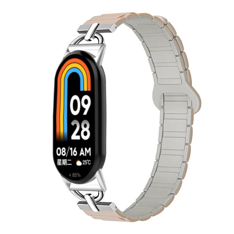 Correa de silicona magnética con tres cuentas en forma de D para Xiaomi Smart Band 10/9/8 (blanco roca de té con leche)