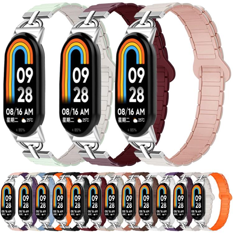 Correa de silicona magnética con tres cuentas en forma de D para Xiaomi Smart Band 10/9/8 (luz menta estrellada)