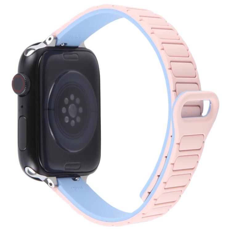 Correa de silicona magnética delgada en forma de I para Apple Watch de 46 mm, 49 mm, 45 mm y 44 mm (plateada y azul rosa)