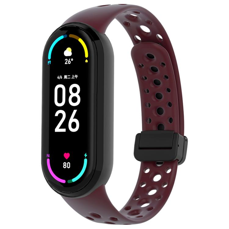 Correa de silicona magnética negra con hebilla para Xiaomi Smart Band de 10/9/8 agujeros (rojo vino)