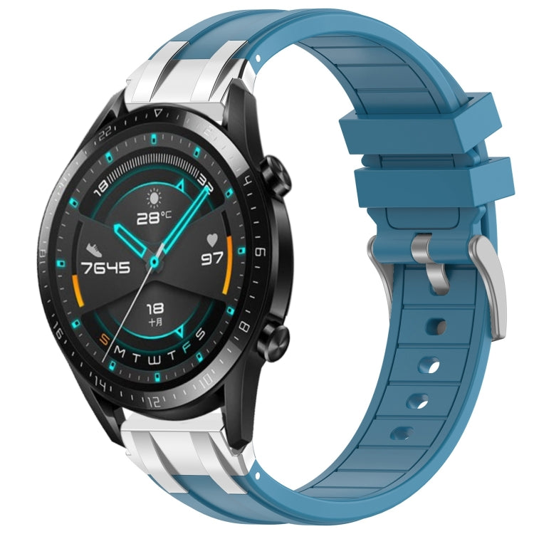 Correa de Silicona para Reloj Huawei Watch GT2 46mm 22mm con Hebilla Plateada (Azul Marino)