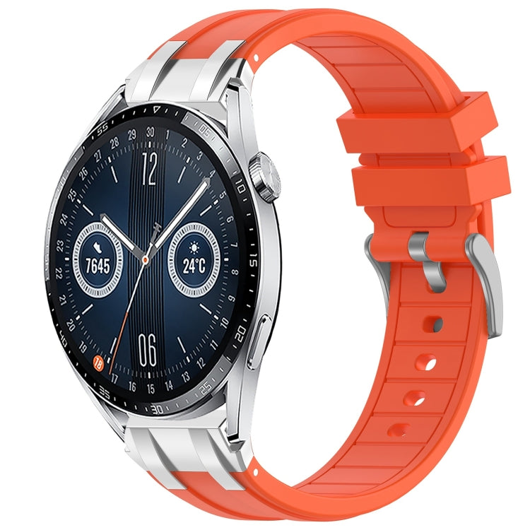 Correa de Silicona para Reloj Huawei Watch Gt3 46mm 22mm con Hebilla Plateada (Naranja)
