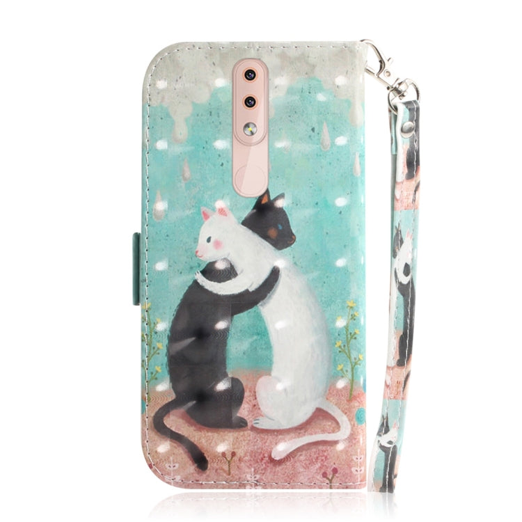Estuche de Cuero con Tapa Horizontal y Dibujo de Gatos 3D para Nokia 4.2 con Soporte y Ranuras