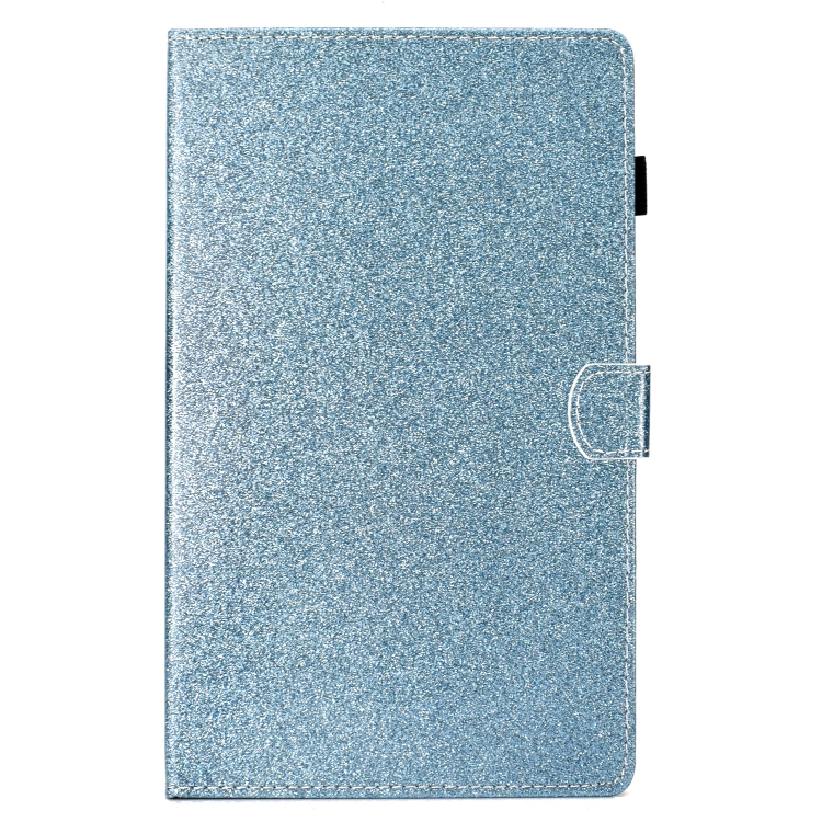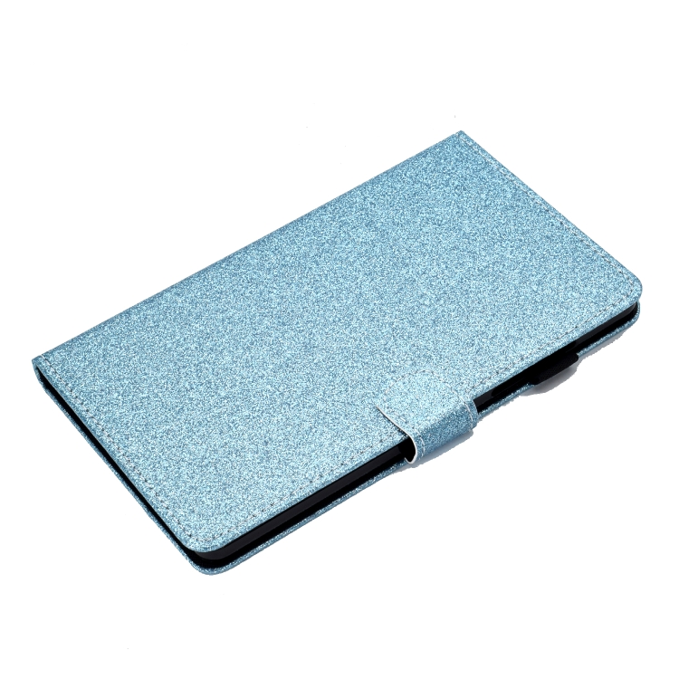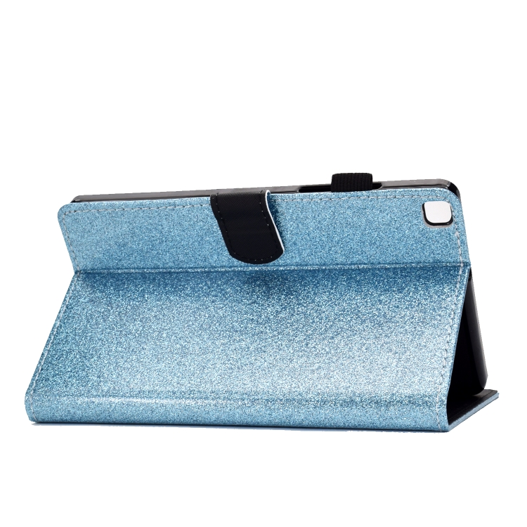 Estuche plano de cuero con purpurina izquierda y derecha con tapa para bolígrafo ranura para tarjeta hebilla tira antideslizante soporte (Azul)