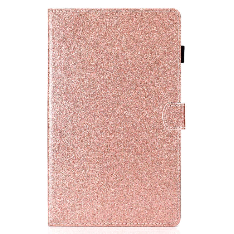 Estuche de Cuero Plano con Purpurina con Tapa para Bolígrafo Ranura para Tarjeta Hebilla Tira Antideslizante Soporte (Oro Rosa)