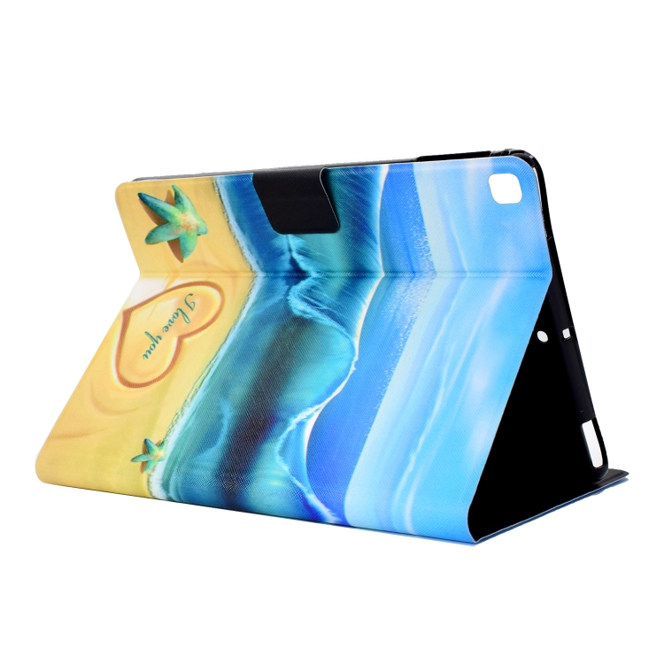 Estuche de Pluma Plana Izquierda y Derecha Prensada Eléctricamente con Tapa para Bolígrafo Ranura para Tarjeta Hebilla Tira Antideslizante Soporte (Blue Beach)