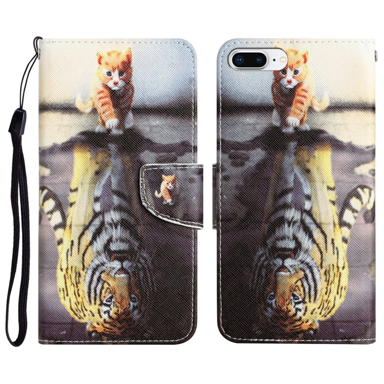 Estuche de Teléfono Cuero iPhone 7 Plus 8 Plus Dibujo Coloreado Tigre