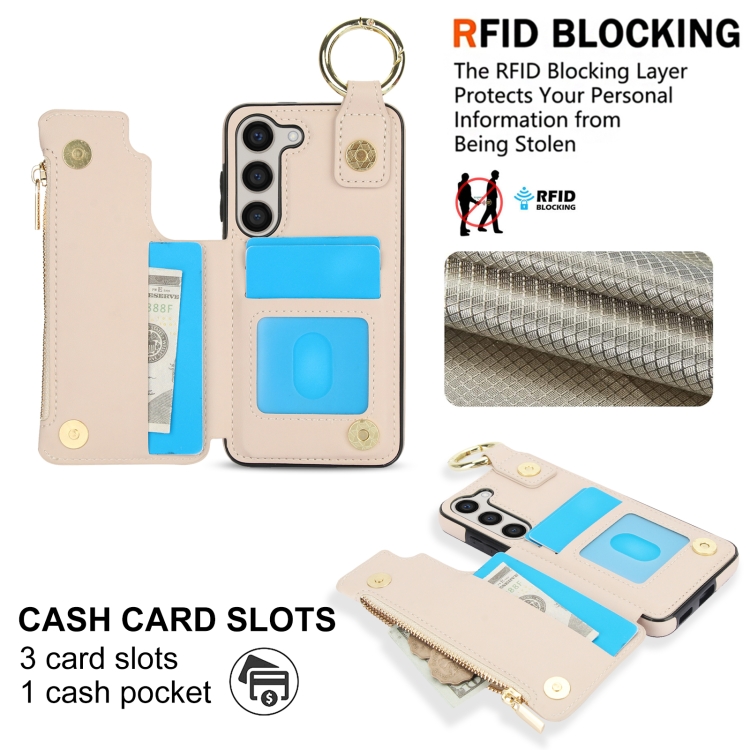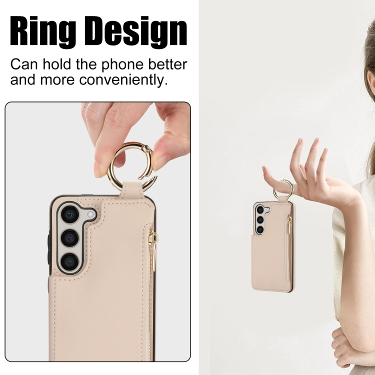 Estuche para Teléfono Samsung Galaxy S23 5G Rfld con Cremallera y Anillo Antirrobo (Blanco)