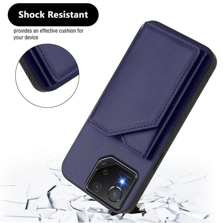 Estuche para Asus Rog Phone 8 Pro con 4 Ranuras para Tarjetas y Correa para Muñeca (Azul)