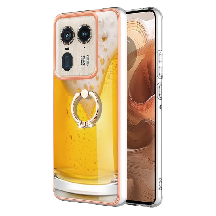 Estuche para Motorola Edge 50 Ultra con Galvanoplastia IMD Doble Cara y Soporte para Anillo (Cerveza de Barril)