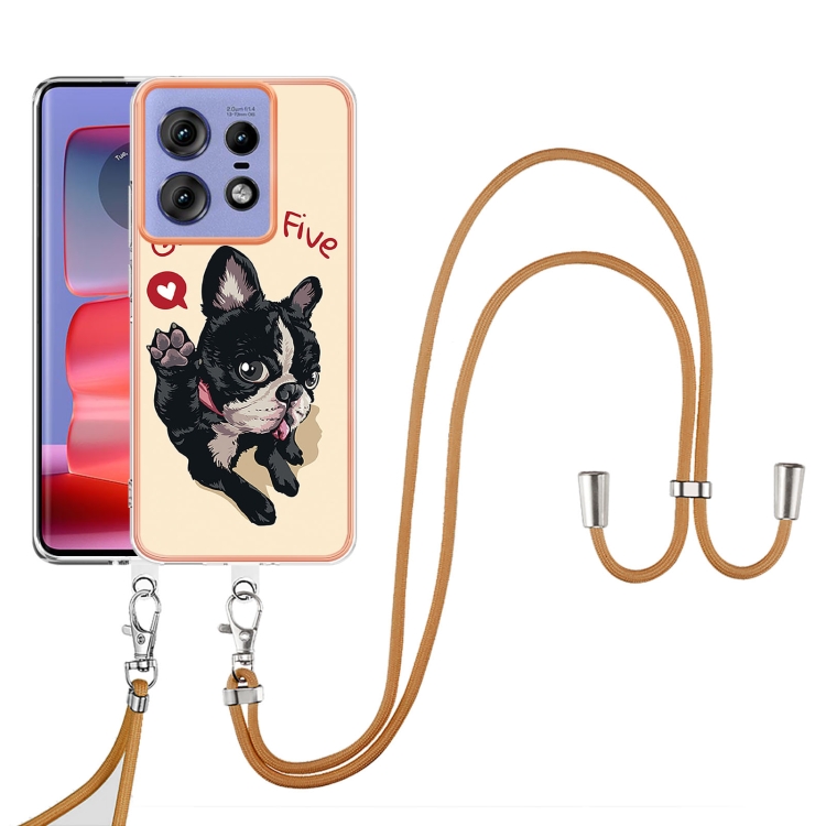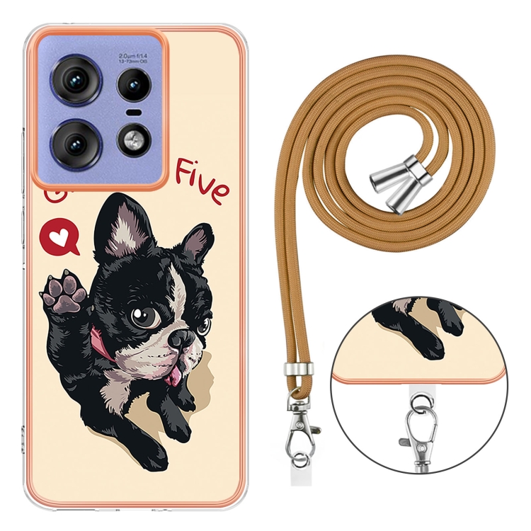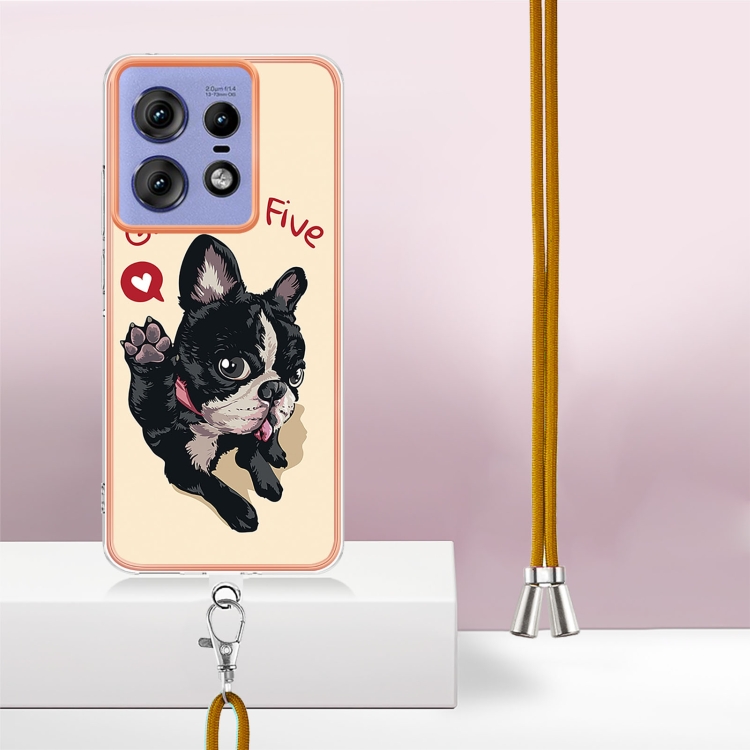 Estuche para Teléfono Motorola Edge 50 Pro con IMD Doble Cara Galvanizada y Cordón (Perro de la Suerte)