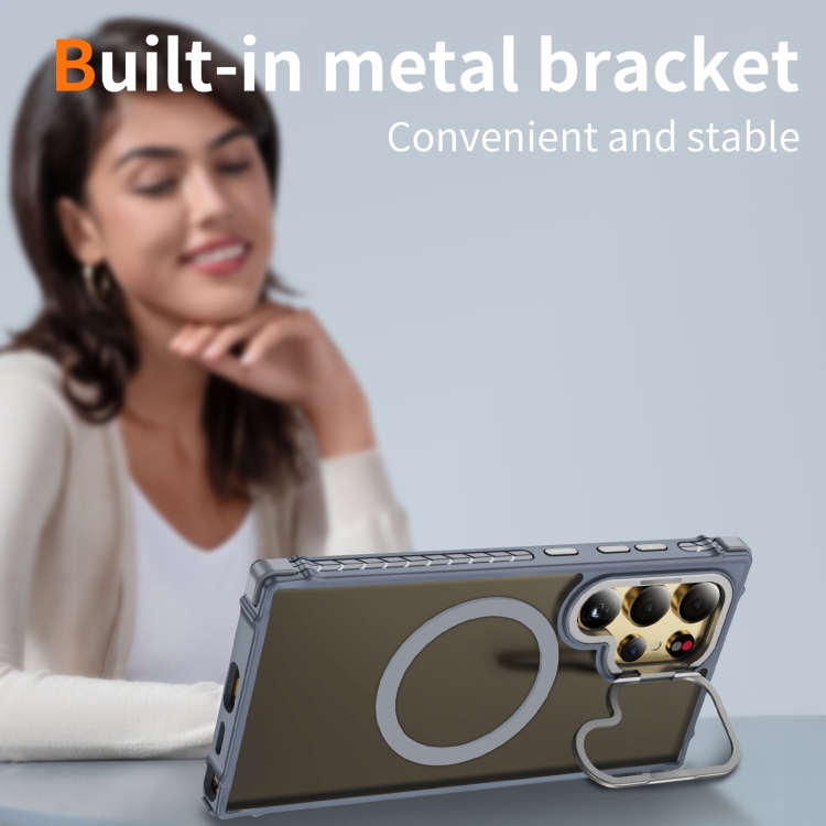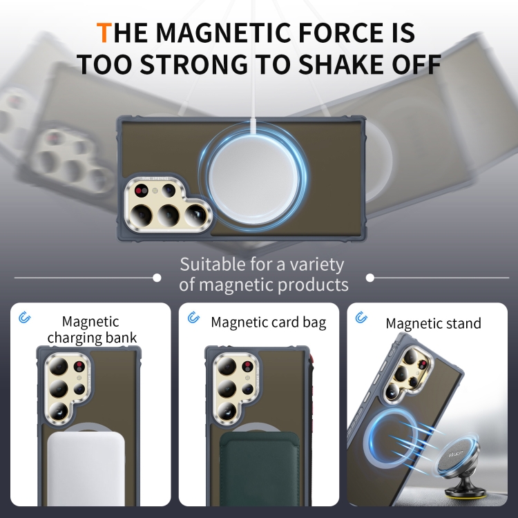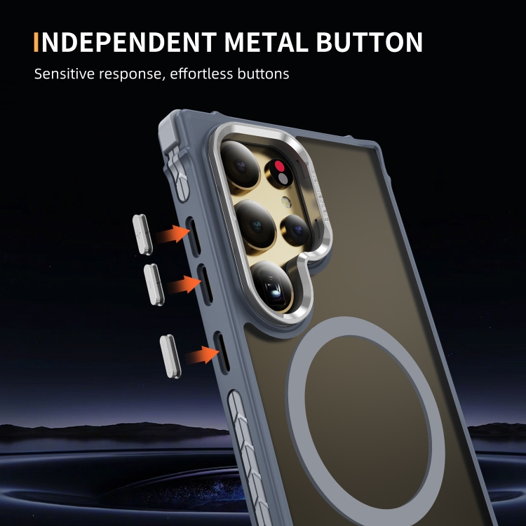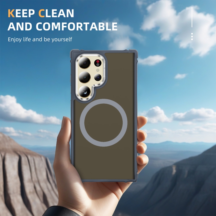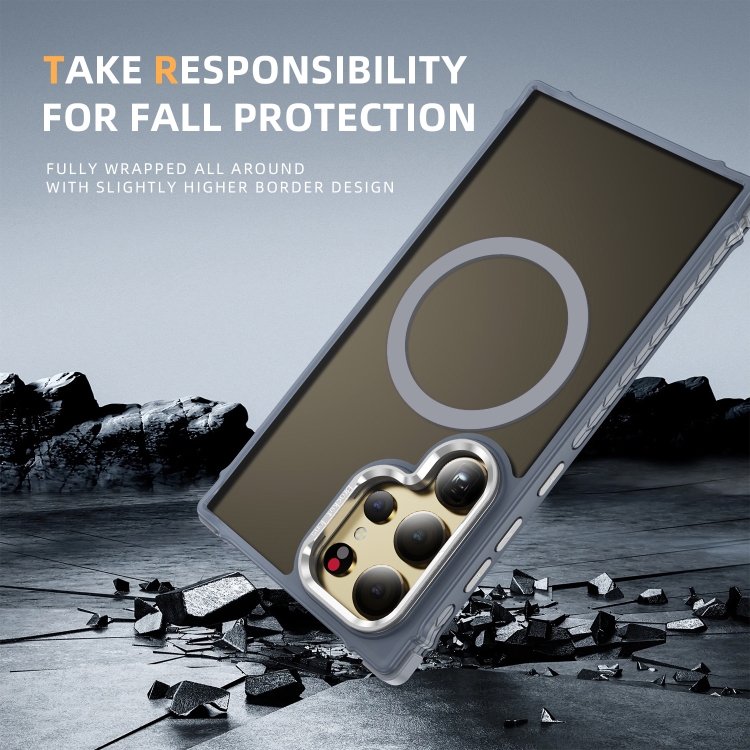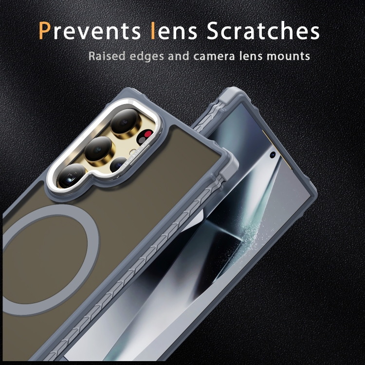 Estuche para Teléfono Samsung Galaxy S24 Ultra 5G con Soporte para Lentes Magsafe y Tacto de Piel (Gris)