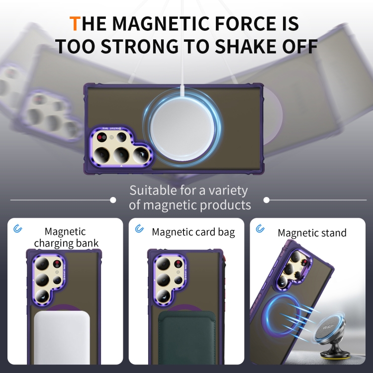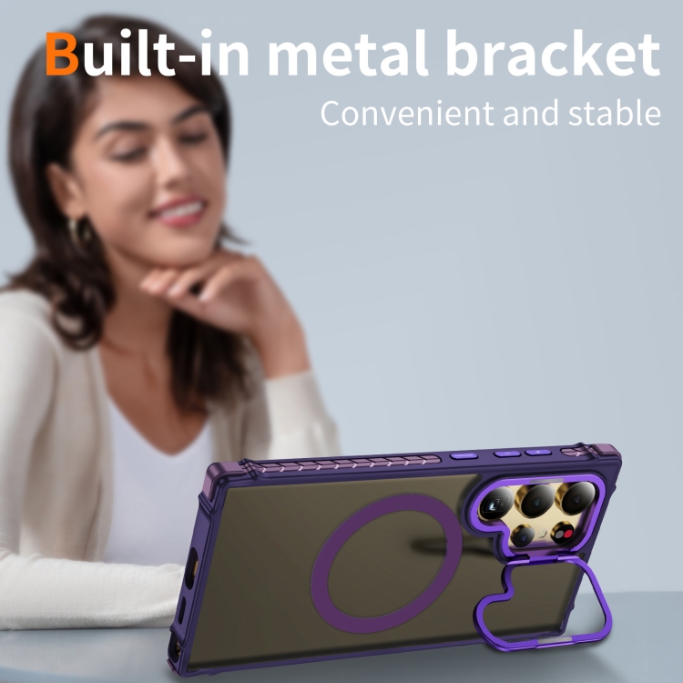 Estuche para Teléfono Samsung Galaxy S24 Ultra 5G con Soporte para Lentes Magsafe y Tacto de Piel (Morado Oscuro)