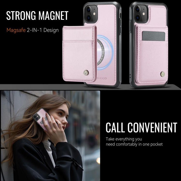 Estuche para Teléfono Jeehood J06 con Tarjetero Rfid Magsafe para iPhone 11 (Rosa)