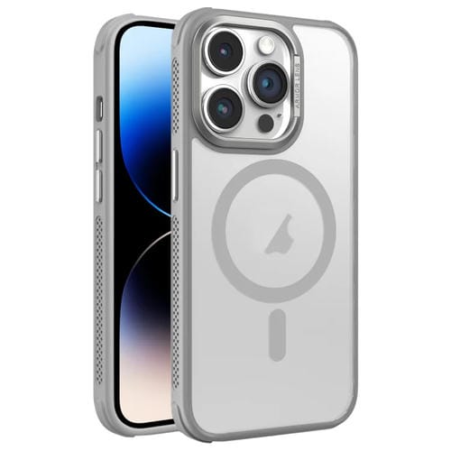 Estuche para Teléfono Magsafe Marco Lente Metal Esmerilado Sensación Piel Enfriamiento Lateral para iPhone 14 Pro Max (Gris)