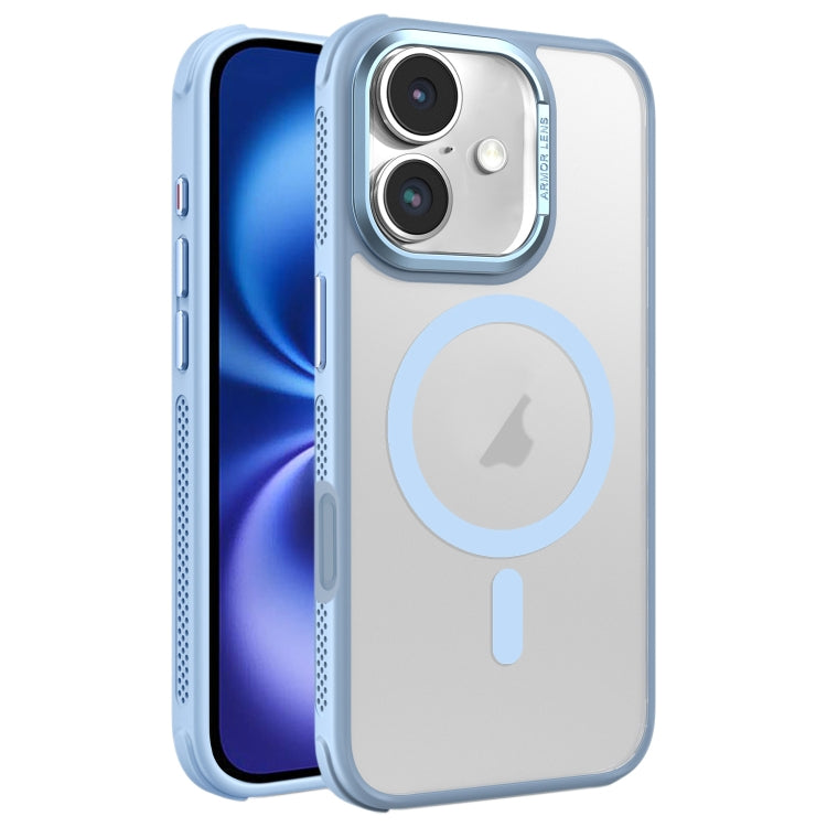 Estuche para Teléfono Magsafe iPhone 16 Marco Lente Metal Esmerilado Sensación Piel Enfriamiento Lateral (Azul Cielo)