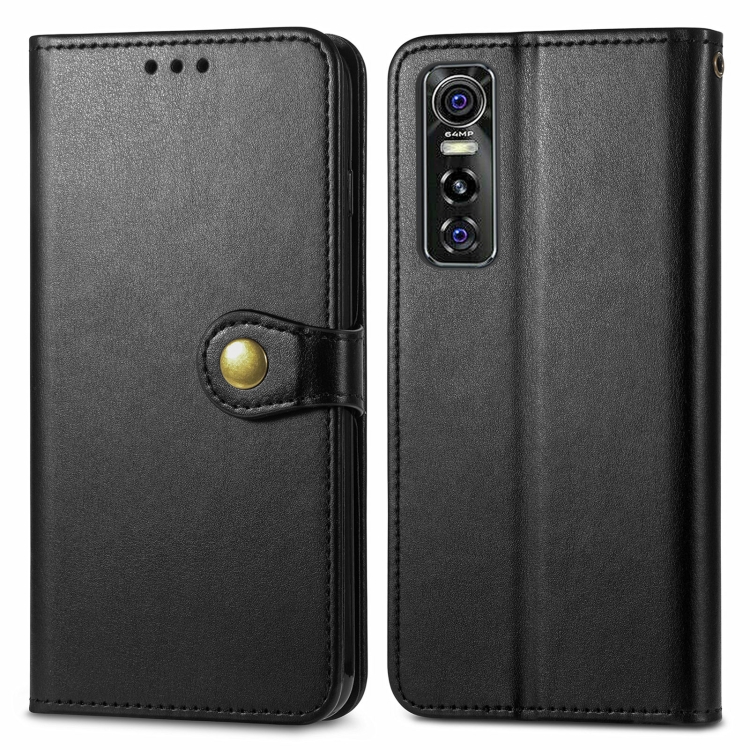 Facena de Teléfono de Hebilla de Cuero de Color Sólido Vivo S7E (Negro)