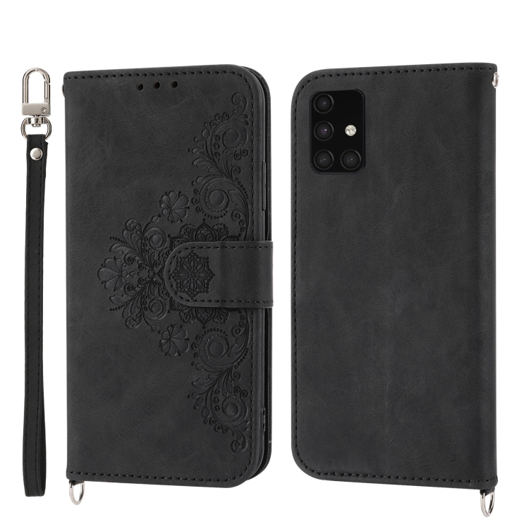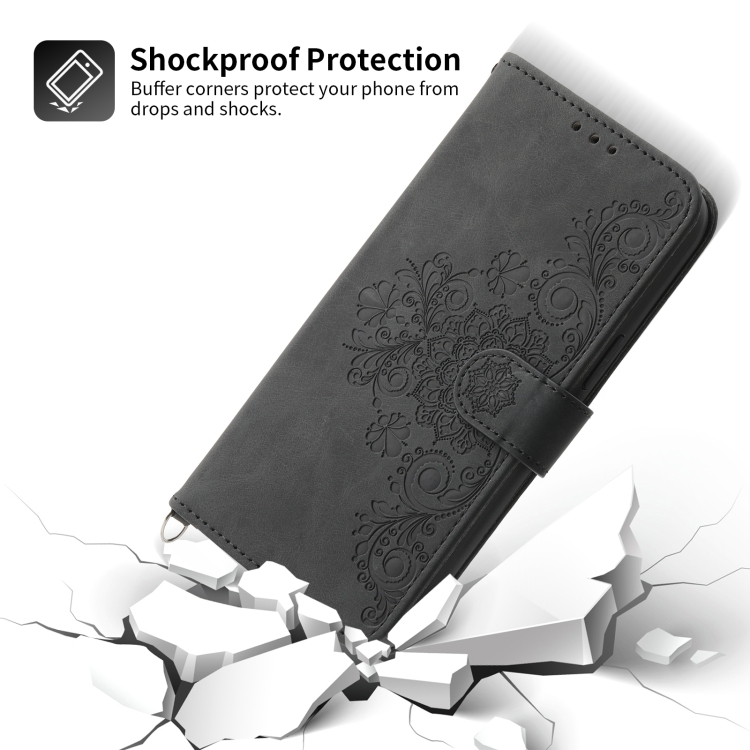 Estuche para Nothing Phone 1 de Cuero Tipo Billetera con Relieve de Flores (Negro)