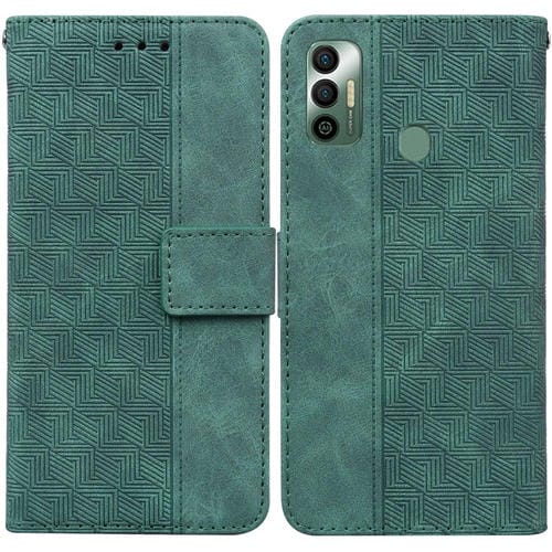 Funda para Tecno Spark 7 con relieve geométrico de cuero (Verde)