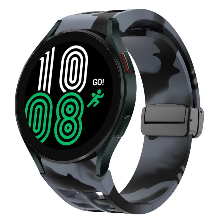 Correa de Silicona Fou para Samsung Galaxy Watch 4 40/44mm con Hebilla Negra Plegable Magnética (Camuflaje Gris Negro)