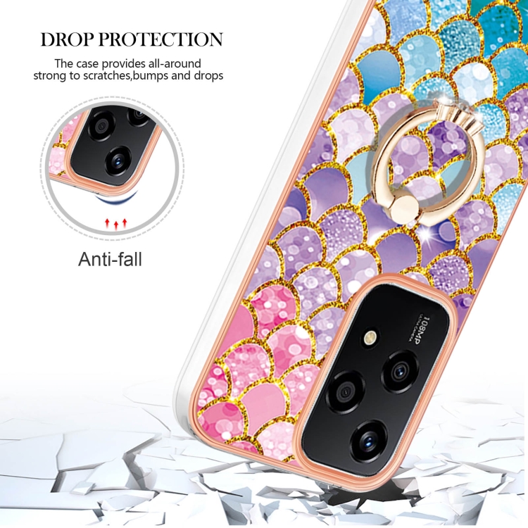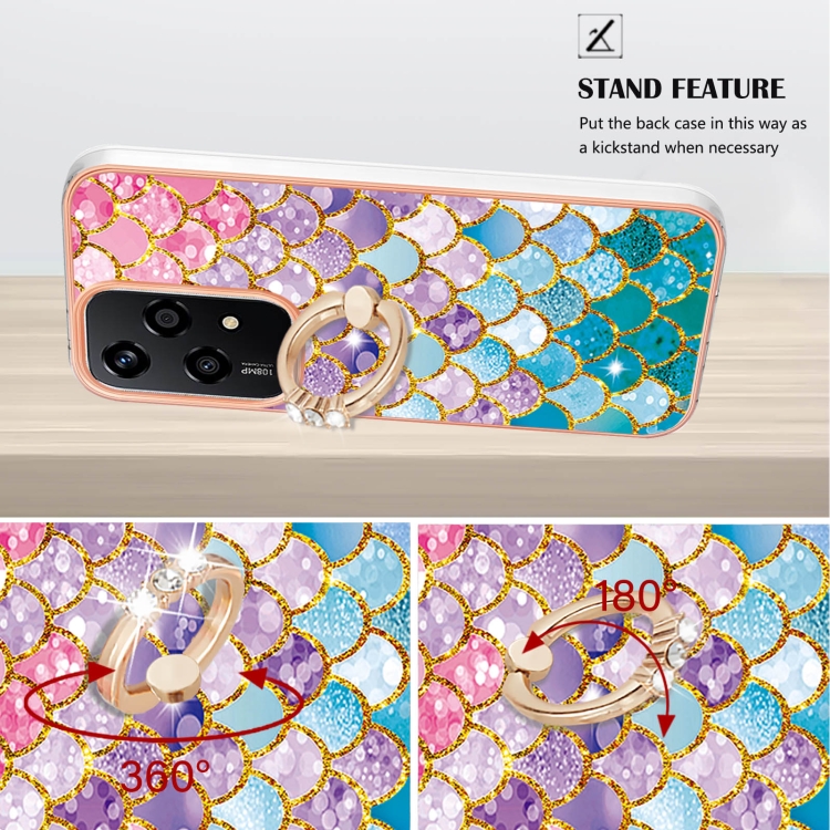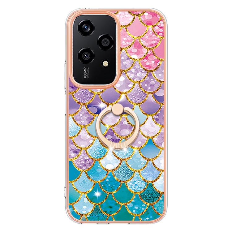 Funda TPU a Prueba de Golpes con Patrón Galvanoplastia y Soporte Anillo para Honor 200 Lite (Escamas de Colores)