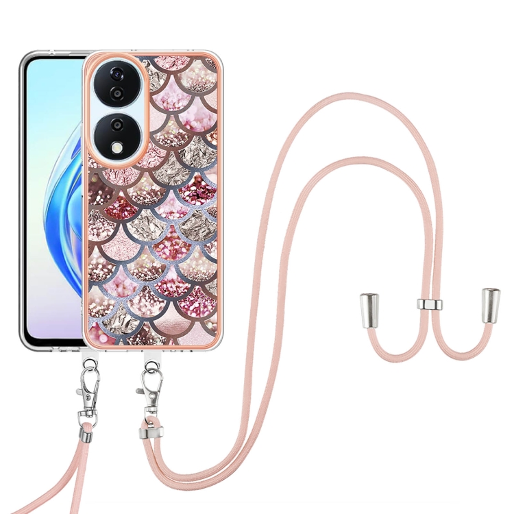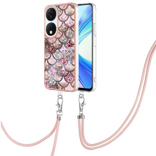 Funda TPU a Prueba de Golpes con Patrón Galvanoplastia Imd y Cordón para Honor X7B 4G/5G (Escamas Rosas)