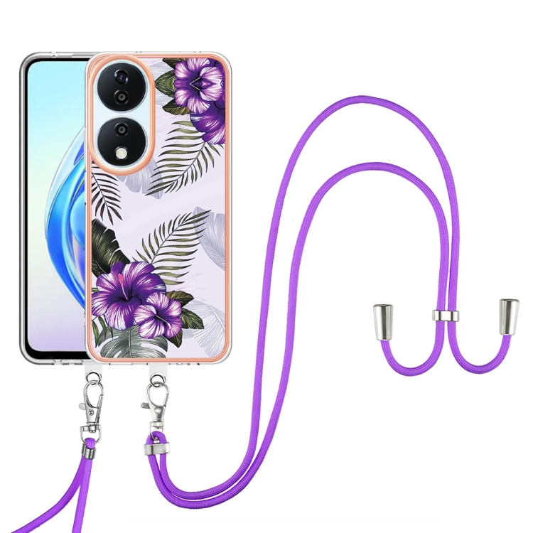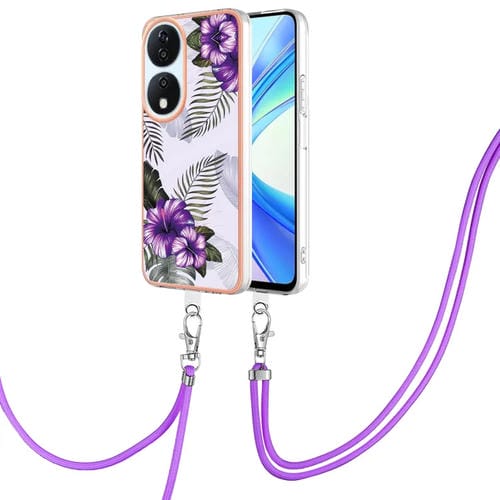 Funda TPU a Prueba de Golpes con Patrón Galvanoplastia y Cordón para Honor X7B 4G/5G (Flor Morada)