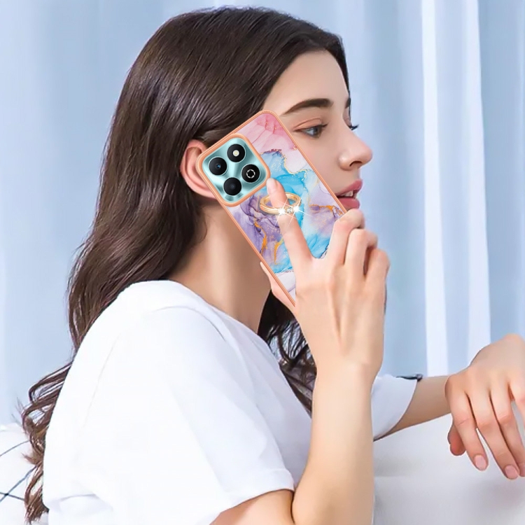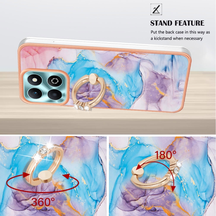 Funda TPU con Patrón Galvanoplastia y Soporte Anillo para Honor X6B (Mármol Azul Vía Láctea)