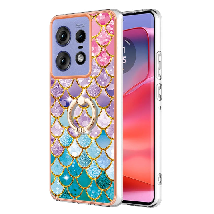 Funda TPU a Prueba de Golpes con Soporte de Anillo y Galvanoplastia para Motorola Edge 50 Pro (Escamas de Colores)