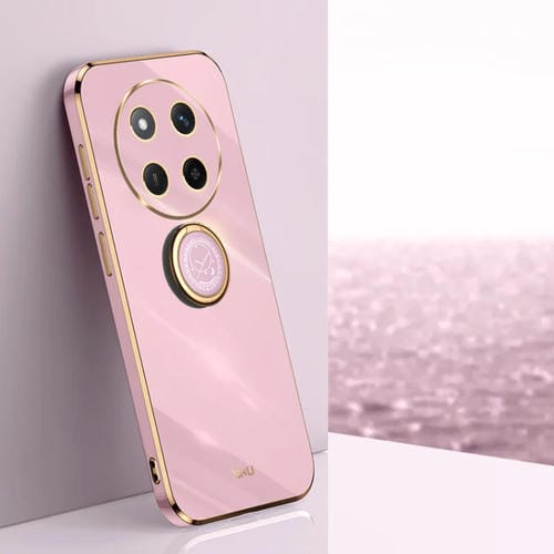 Funda TPU con Borde Dorado y Revestimiento 6D para Honor X60 Pro Xinli con Soporte para Anillo (Morado Cereza)