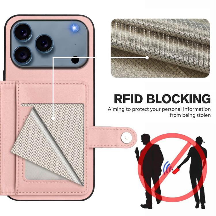 Funda antirrobo RFID con botón y tarjetero para iPhone 17 Pro Max (rosa)