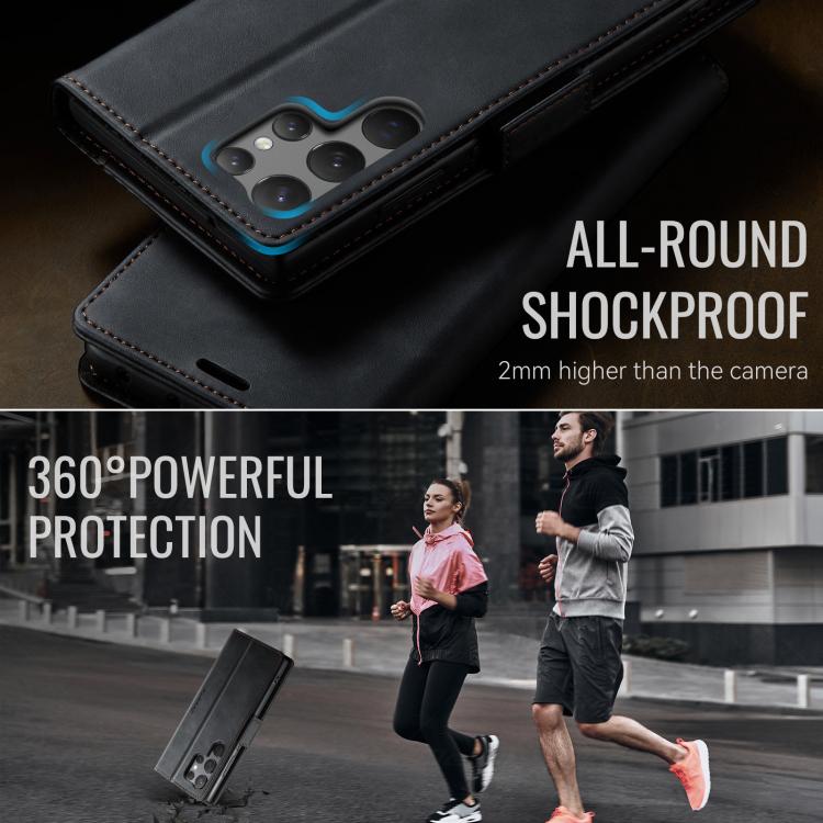 Funda CaseMe 033 para Samsung Galaxy S23 Ultra 5G, forro de piel de becerro, microfibra, con bloqueo RFID (negra)