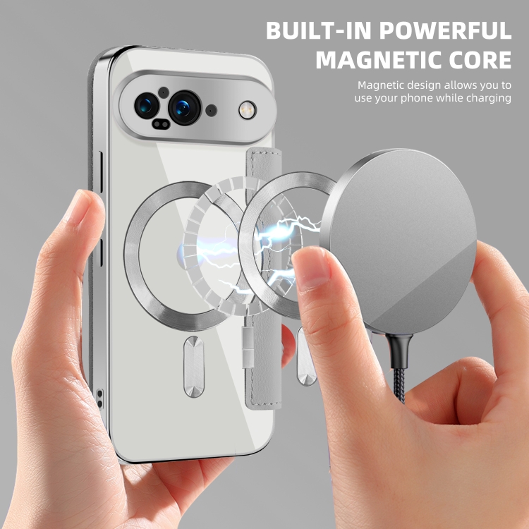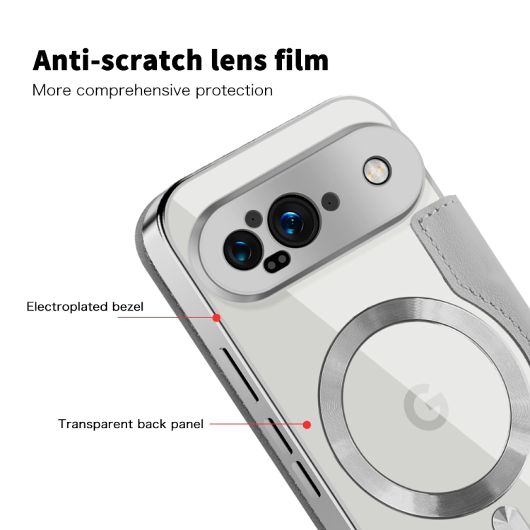 Funda de Cuero Antirrobo con Rfid Magsafe para Google Pixel 9 Shield (Gris)