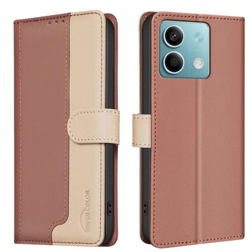 Funda de Cuero Antirrobo con Rfid y Combinación de Colores para Xiaomi Redmi Note 13 4G (Marrón)