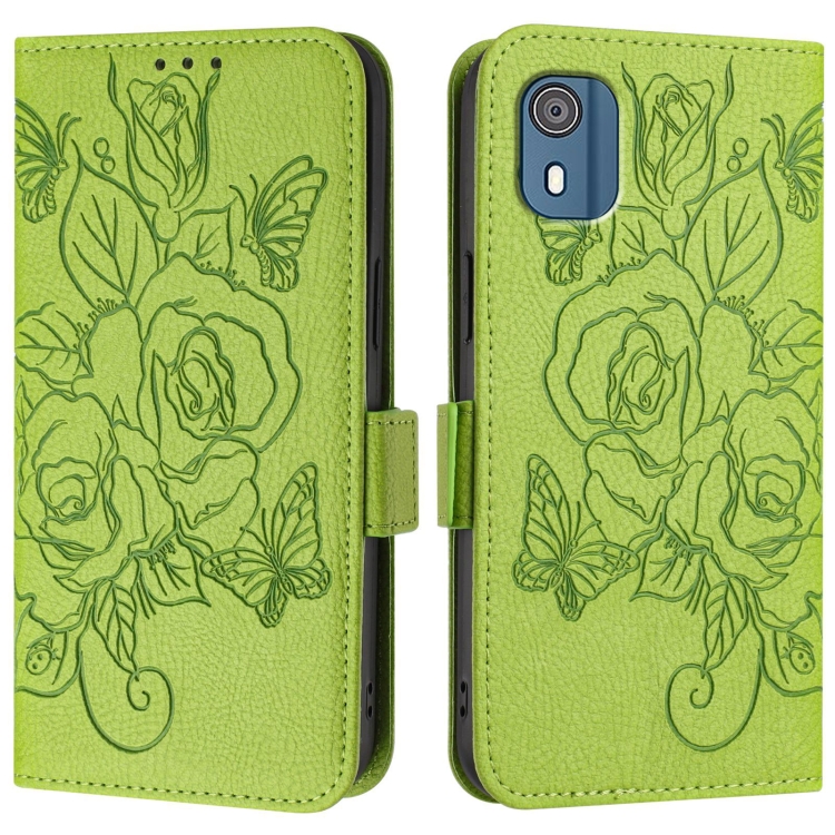 Funda de Cuero Antirrobo RFID con Relieve para Nokia C02 (Verde)