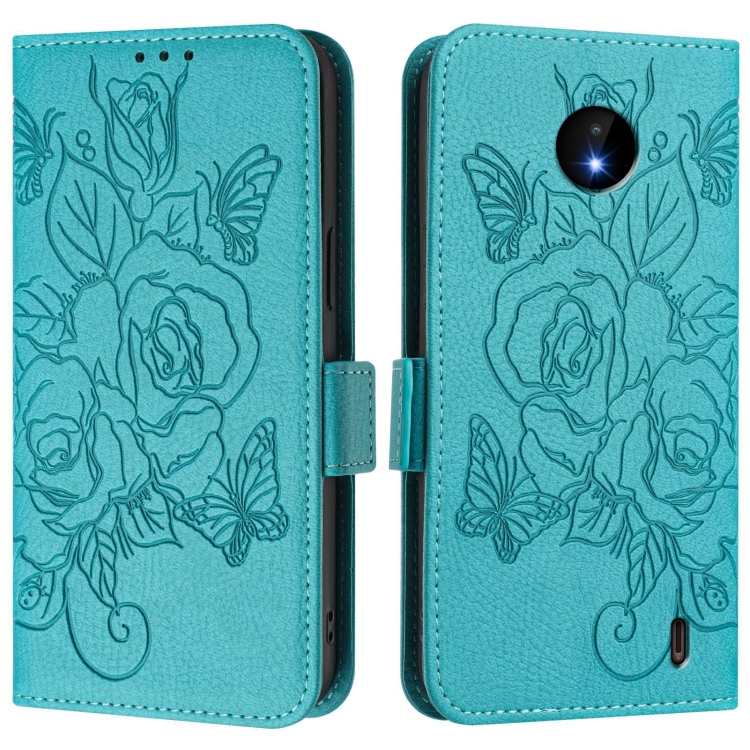 Funda de Cuero Antirrobo RFID con Relieve para Nokia C10/C20 (Azul Claro)