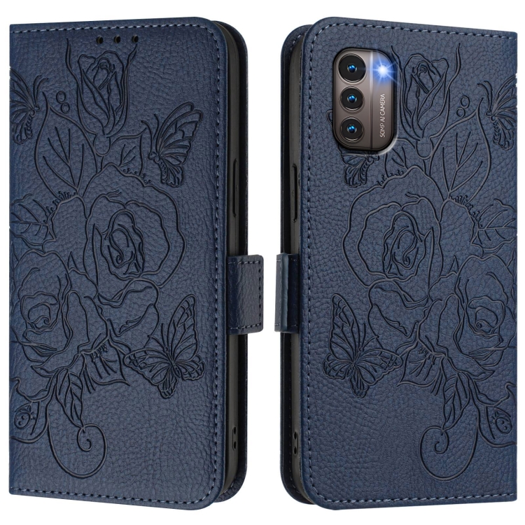Funda de Cuero Antirrobo RFID con Relieve para Nokia G21/G11 (Azul Oscuro)