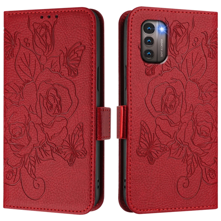 Funda de Cuero Antirrobo RFID con Relieve para Nokia G21/G11 (Roja)