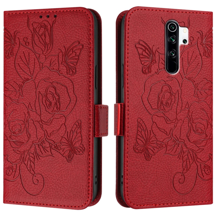 Funda de Cuero Antirrobo Rfid con Relieve En Rosa para Redmi Note 8 Pro (Rojo)