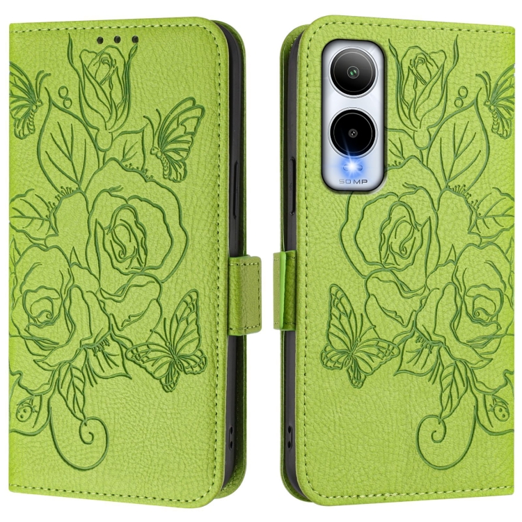 Funda de cuero antirrobo RFID con relieve para teléfono Cricket Icon 6 (Verde)