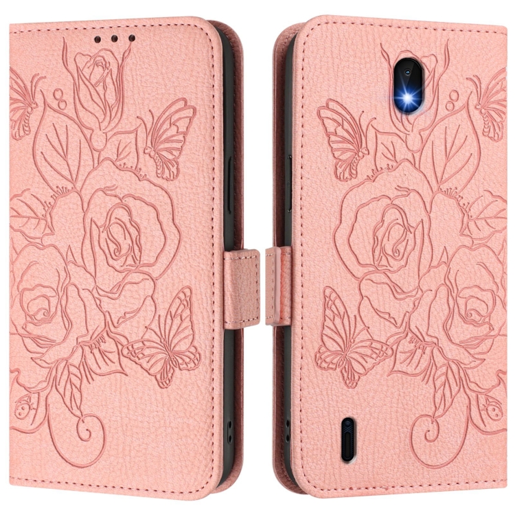 Funda de Cuero Antirrobo RFID con Relieve para Nokia C01 Plus C1 2.ª Edición (Rosa)